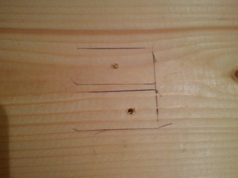 Per unire i due alberelli ho praticato un taglio al centro di entrambi. Il primo albero è tagliato dalla punta fino alla metà. Il secondo invece è tagliato partendo dal tronco, anche in questo caso fino alla metà. La larghezza del taglio è uguale allo spessore del pannello.
