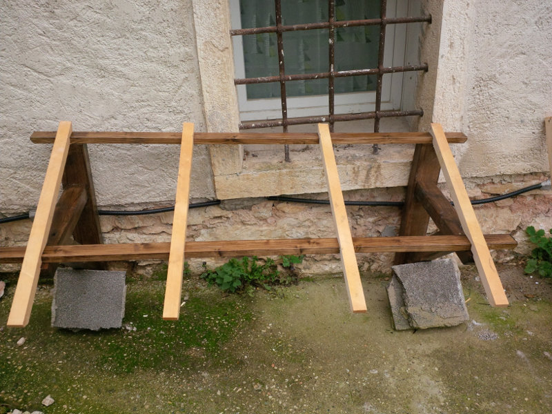 Ho costruito contemporaneamente i due montanti iniziando con due listelli a sezione rettangolare (sezione 10 x 6 cm) recuperati dal bancale.